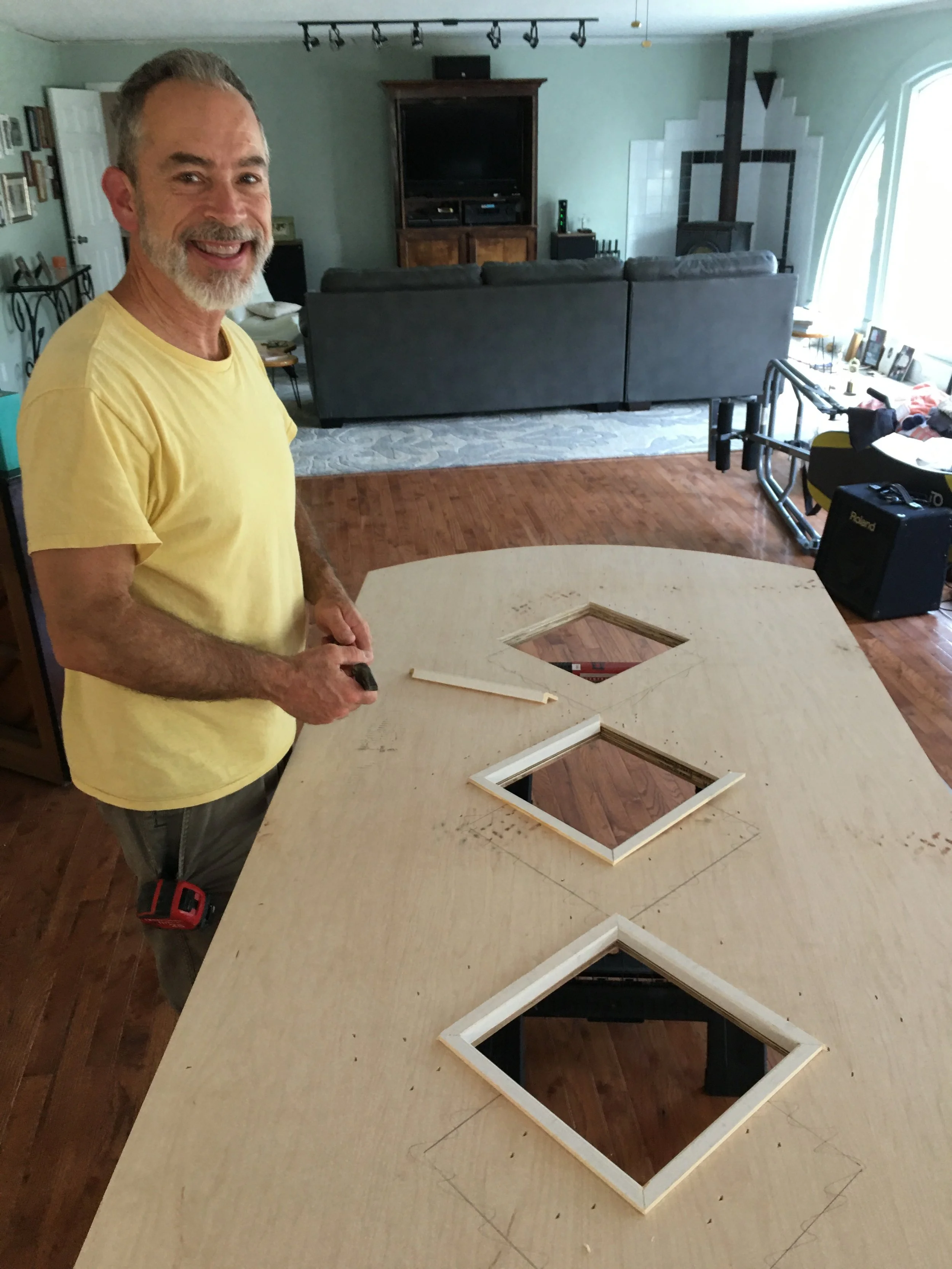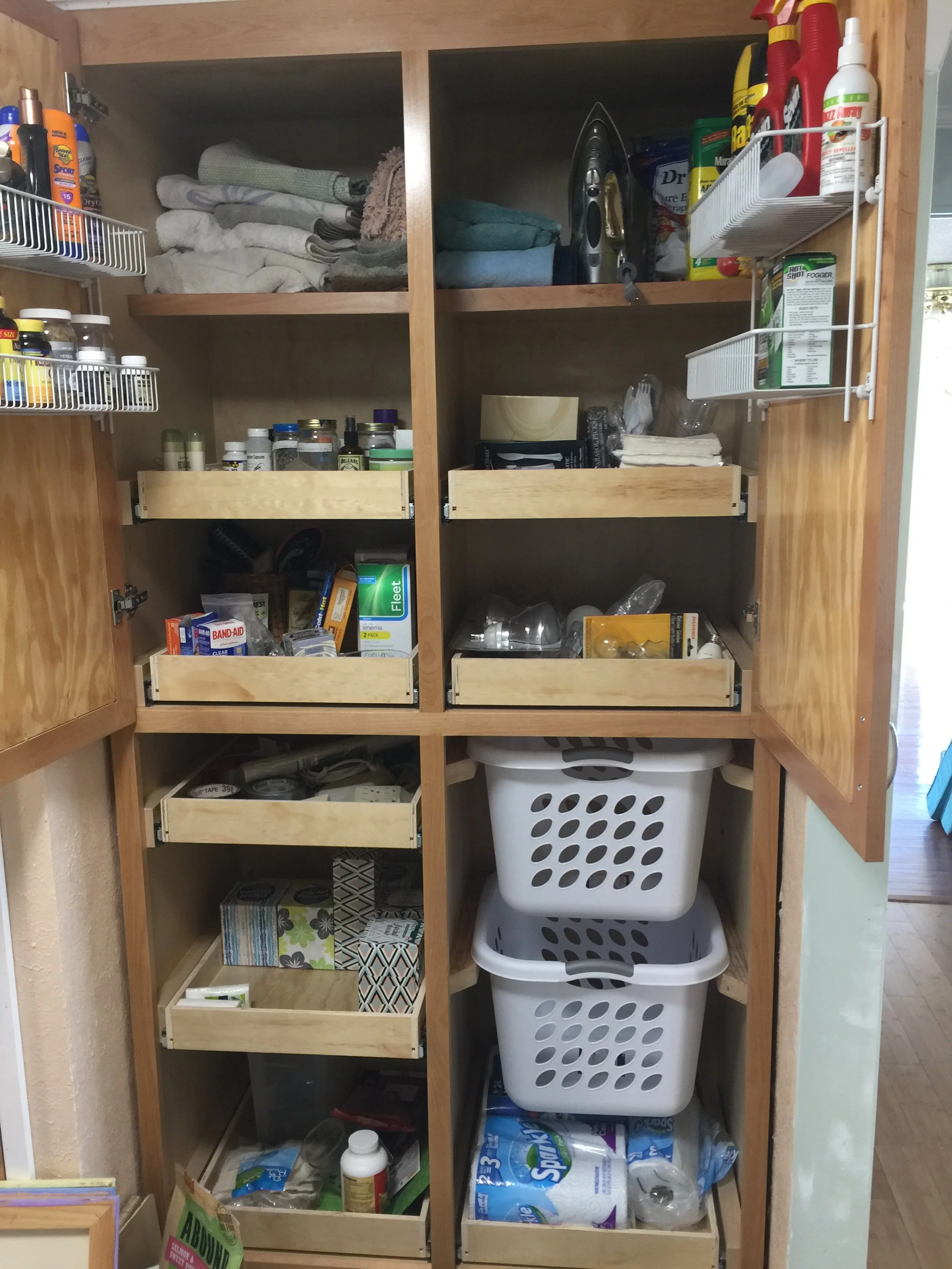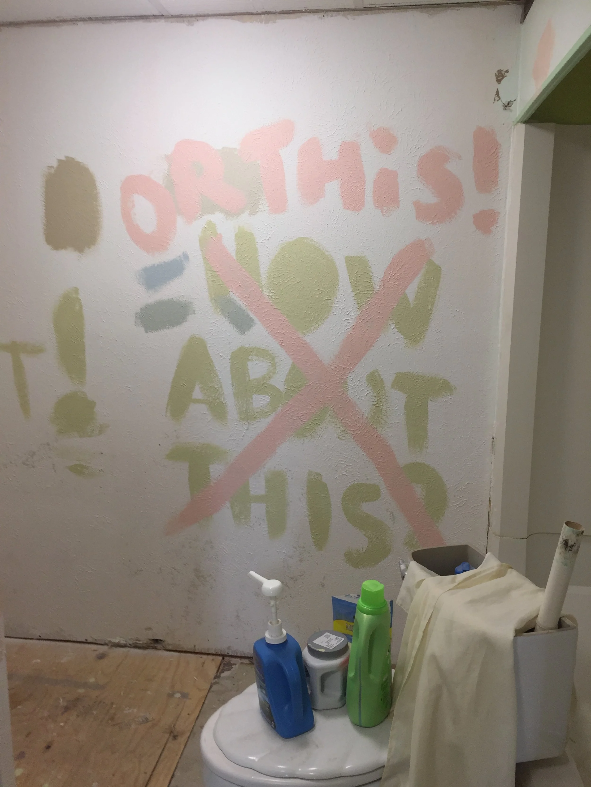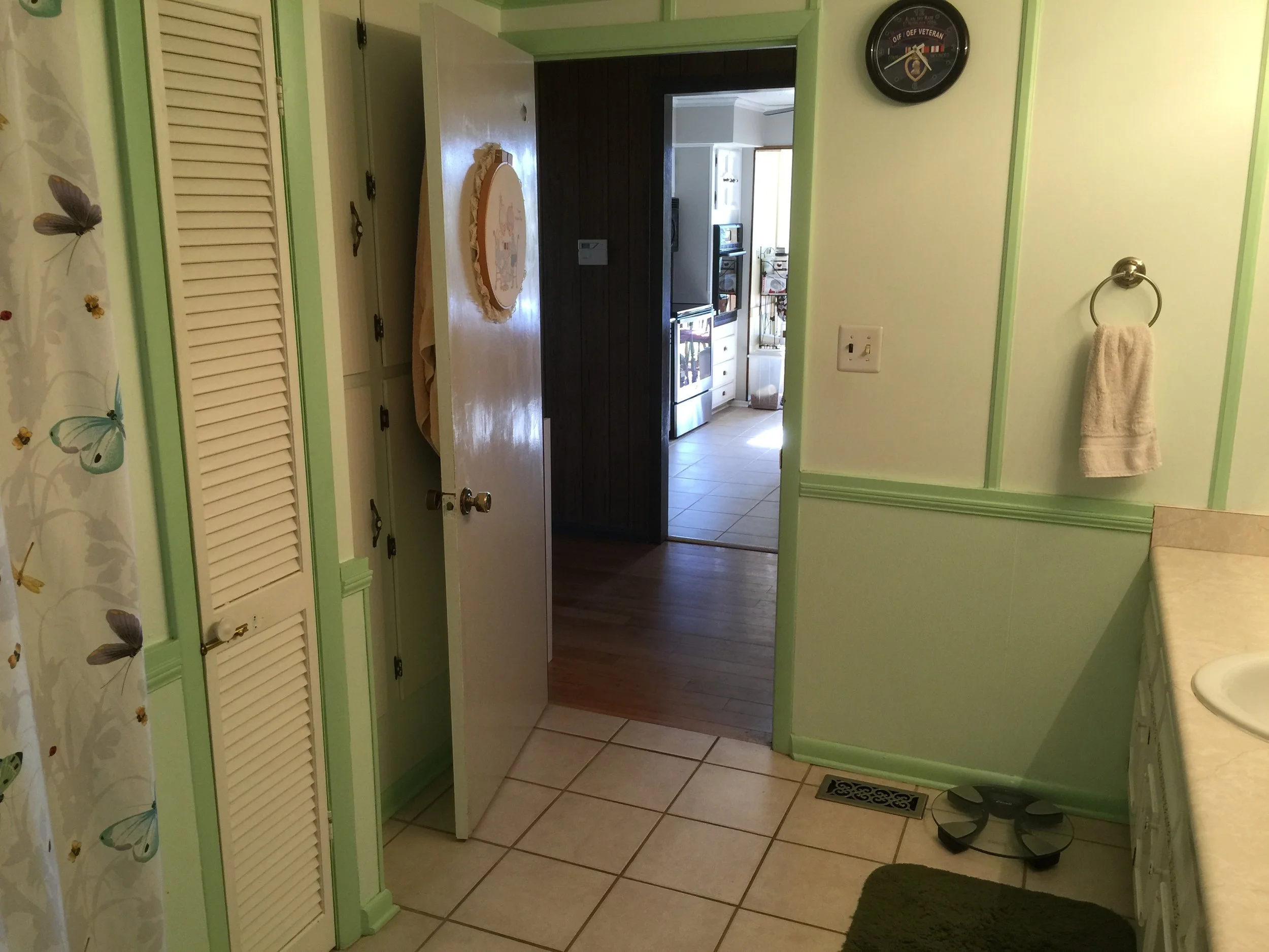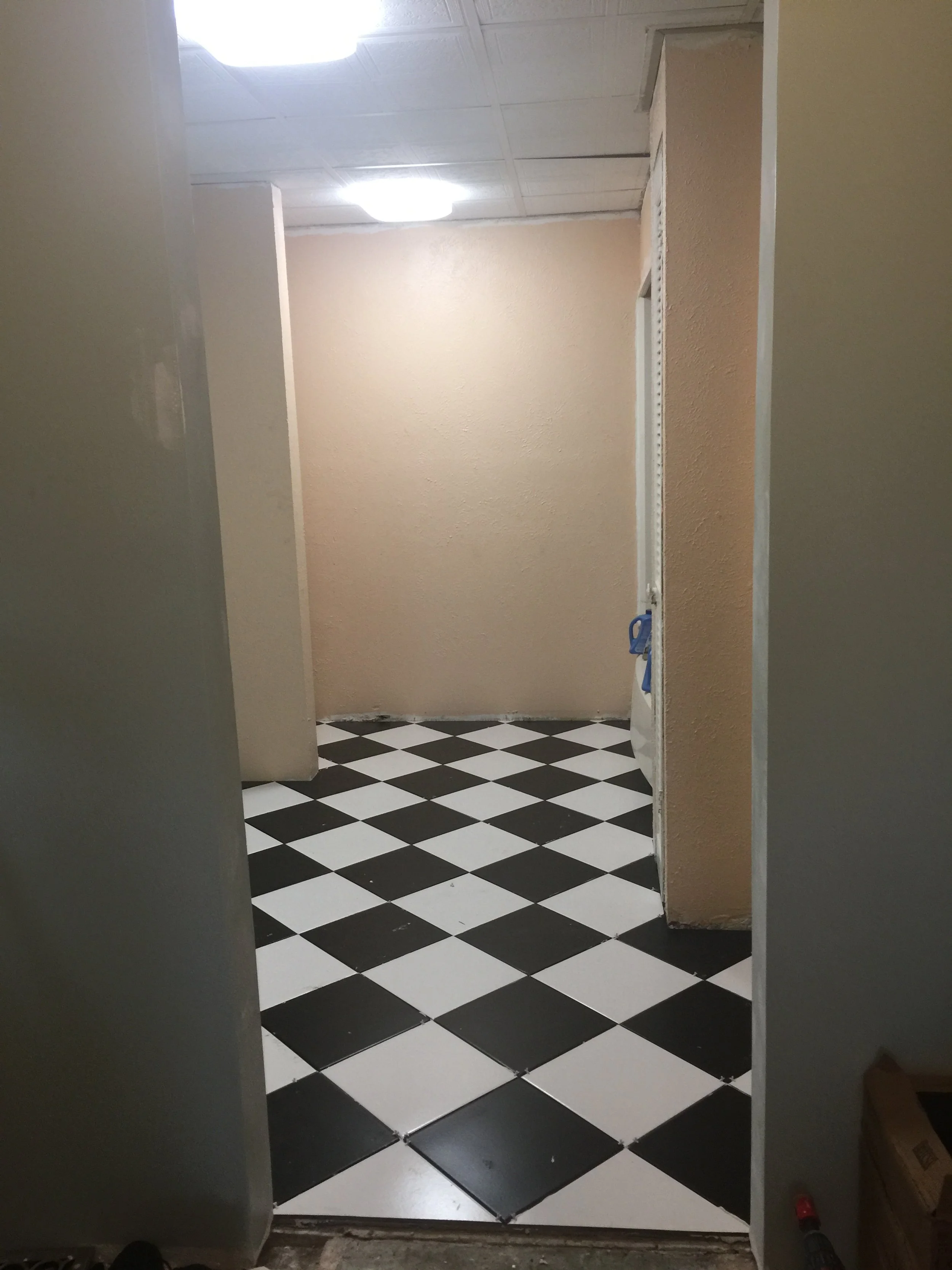 When we first moved in the Master Bathroom was located just inside the back door, a mile from the Master Bedroom. After we created a new Master Bathroom we began the process of transforming the old one into a mud room/laundry room/full bath. The old laundry room was located on the bottom floor and Cindy hated having to constantly go up and down the stairs to monitor the laundry. She wanted it on the main floor near the kitchen. After much deliberation, dreaming and scheming we launched into the project. The same weekend I began demo on the space we had guests in our upstairs Air B&B. The husband just happened to be a contractor who was there tagging along with his wife. She was busy during the day and he was bored. So he basically jumped in and jump started the project for me. It was great! He taught me a few tricks and saved me about two weeks of work. My Dad built the cabinets for me. We painted them white. The door to the bathroom will be on a sliding track and will slide to cover either the bathroom or the stairs. We occasionally have little ones running around so closing off the stairs is helpful. The space is working out great!